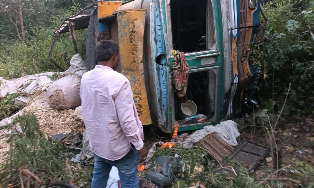 ଆମପାଣି ଘାଟି ରେ ଭାରସାମ୍ୟ ହରାଇ ଟ୍ରକ ଦୁର୍ଘଟଣା, ଡ୍ରାଇଭର ମୃତ,ପୋଲିସ ର ତଦନ୍ତ ଜାରି।