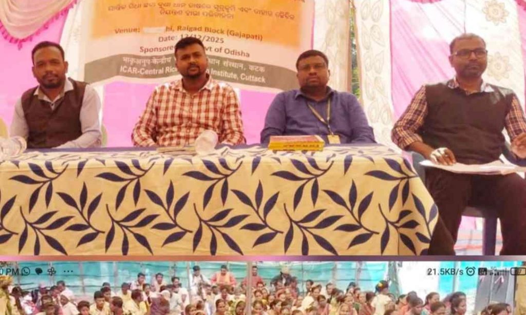 ଗଜପତି ଜିଲ୍ଲା ରାୟଗଡ଼ ବ୍ଲକ ର ସୁନା ପୁର ଠାରେ କଟକ କେନ୍ଦ୍ରୀୟ ଧାନ ଗବେଷଣା ଅନୁଷ୍ଠାନ ତରଫରୁ ଚାଷୀ ସଚେତନତା ମେଳା ଅନୁଷ୍ଠିତ
