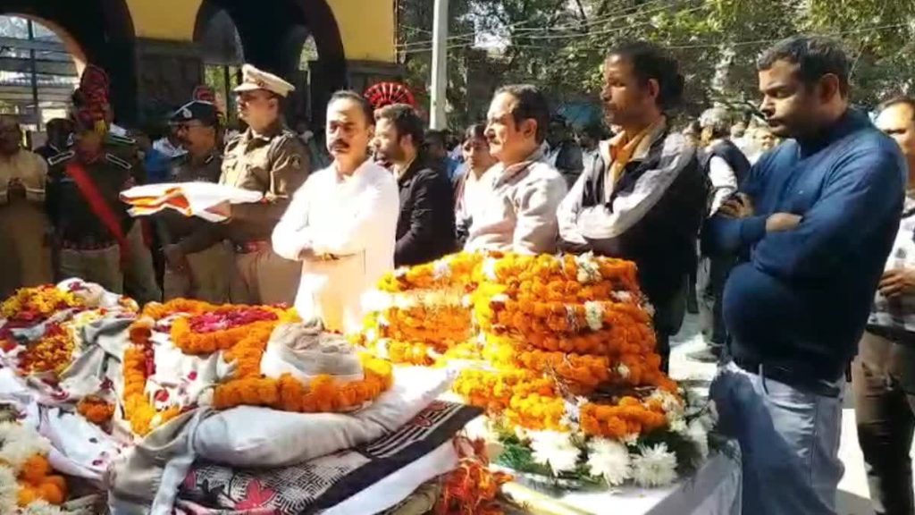 ପ୍ରସିଦ୍ଧ ସାହିତ୍ୟିକ ବିନୋଦ କୁମାର ଶୁକ୍ଲାଙ୍କ ଶେଷକୃତ୍ୟ ସ°ପୂର୍ଣ୍ଣ ରାଜ୍ୟ ସମ୍ମାନ ସହିତ ସମ୍ପନ୍ନ ହେଉଛି। ବୁଢା ତାଲାବସ୍ଥିତ ମାରୱାଡି ମୁକ୍ତି ଧାମରେ ତାଙ୍କୁ ଗାର୍ଡ ଅଫ୍ ଅନର ପ୍ରଦାନ କରାଯାଇଛି। ମୁକ୍ତି ଧାମରେ ବହୁ ସଂଖ୍ୟକ ଲୋକ ଶ୍ରଦ୍ଧାଞ୍ଜଳି ଅର୍ପଣ କରିଛନ୍ତି। ପୂର୍ବତନ କଂଗ୍ରେସ ବିଧାୟକ ବିକାଶ ଉପାଧ୍ୟାୟ ଏବଂ ବିଜେପି ବିଧାୟକ ଅନୁଜ ଶର୍ମା ମଧ୍ୟ ବିନୋଦ କୁମାର ଶୁକ୍ଲାଙ୍କୁ ଶ୍ରଦ୍ଧାଞ୍ଜଳି ଜଣାଇଥିଲେ। ରାୟପୁର କଲେକ୍ଟର, ରାୟପୁର ଏସଏସପି, ଜିଲ୍ଲା ପଞ୍ଚାୟତ ସିଇଓ, ଏସଡିଏମ ଏବଂ ଅନେକ ସାହିତ୍ୟିକ ଶ୍ରଦ୍ଧାଞ୍ଜଳି ଅର୍ପଣ କରିଥିଲେ।
