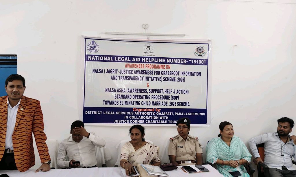 ନାଲସା ଜାଗୃତି ଯୋଜନା ଏବଂ ନାଲସା ଆଶା ଯୋଜନା ଅନୁଯାୟୀ ବାଲ୍ୟ ବିବାହ ନିରୋଧ ପାଇଁ ଆଇନରେ ରହିଥିବା ବିଭିନ୍ନ ଦିଗ ବିଷୟରେ ଏକ ଜନ ସଚେତନତା କାର୍ଯ୍ୟକ୍ରମ ଆଜି ଘଟିକା ସମୟରେ ଗଜପତି ଜିଲ୍ଲା ଅନ୍ତର୍ଗତ ଗୋସାଣି ବ୍ଲକର ଲାବଣ୍ୟଗଡ଼ ଗ୍ରାମ ପଞ୍ଚାୟତ ସମ୍ମିଳନୀ ହଲରେ ଗଜପତି ଜିଲ୍ଲା ଆଇନ ସେବା ପ୍ରାଧିକରଣ ସଚିବ ବିମଳ ରାଉଳଙ୍କ ଅଧ୍ୟକ୍ଷତାରେ ତଥା ପାରଳାଖେମୁଣ୍ଡିସ୍ଥିତ ଅଗ୍ରଣୀ ସ୍ବେଚ୍ଛାସେବୀ ସଙ୍ଗଠନ ଜଷ୍ଟିସ କର୍ଣ୍ଣର ଚାରିଟେବଲ ଟ୍ରଷ୍ଟଙ୍କ ସହଯୋଗରେ ସଫଳତାର ସହିତ ଅନୁଷ୍ଠିତ ହୋଇଯାଇଛି। ଏହି କାର୍ଯ୍ୟକ୍ରମରେ ସମ୍ମାନିତ ଅତିଥି ଭାବେ ଜିଲ୍ଲା ଅଦାଲତର ଭାରପ୍ରାପ୍ତ କ୍ୟାଡ଼ର ପବ୍ଲିକ ପ୍ରୋସେକ୍ୟୁଟର ରାଜେଶ କୁମାର ମିଶ୍ର, କିଶୋର ନ୍ୟାୟ ବୋର୍ଡର ସଦସ୍ୟ ଶ୍ରୀମତୀ ଭାଗ୍ୟଲକ୍ଷ୍ମୀ ନାୟକ, ଗାରାବନ୍ଧ ଥାନାର ସବ ଇନ୍ସପେକ୍ଟର କୁମାରୀ ଅମ୍ବିକା ବେନିଆ, ଗୋସାଣି ବ୍ଲକର ଆଇ.ସି.ଡି.ଏସ. ସୁପରଭାଇଜର, ଶ୍ରୀମତୀ ତପସ୍ୱିନୀ ଜେନା ତଥା ପାରଳାଖେମୁଣ୍ଡି ସ୍ଥିତ ଜଷ୍ଟିସ କର୍ଣ୍ଣର ଚାରିଟେବଲ ଟ୍ରଷ୍ଟର ସମାଜସେବୀ ଜଗନ୍ନାଥ ଚୌଧୁରୀ
