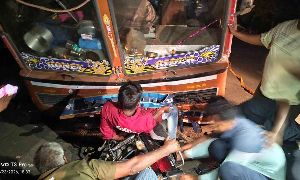 ଟ୍ରକ ଚାପା ରେ ବାଇକ ସମେତ ଯୁବକ ଗୁରୁତର, ଦିର୍ଘ ସମୟ ପରେ ଉଦ୍ଧାର ହେଲେ ଗୁରୁତର ଯୁବକ।