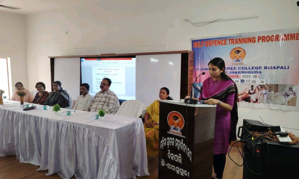ଝାରସୁଗୁଡ଼ା ୨୦/୩ (ଓଡ଼ିଶା ନ୍ୟୂଜ୍): ଝାରସୁଗୁଡ଼ା ଜିଲ୍ଲା ଲଖନପୁର ବ୍ଲକ ପଞ୍ଚଗାଁ ଗ୍ରାମ ପଞ୍ଚାୟତ ଅନ୍ତର୍ଗତ ବିଜାପାଲି ମହିମା ସ୍ମାରକ ମହାବିଦ୍ୟାଳୟ ଠାରେ ଛାତ୍ରୀ ମାନଙ୍କ ପାଇଁ ଆୟୋଜିତ ‘ଆତ୍ମ ସୁରକ୍ଷା କୌଶଳ’ ପ୍ରଶିକ୍ଷଣ କାର୍ଯ୍ୟକ୍ରମ ଉଦ୍‌ଯାପିତ ହୋଇ ଯାଇଛି। ଯୁକ୍ତ ୩ ପ୍ରଥମ ବର୍ଷର ଛାତ୍ରୀ ମାନଙ୍କୁ ଆତ୍ମରକ୍ଷା ପାଇଁ ସଶକ୍ତ ଓ ସଚେତନ କରିବା ଲକ୍ଷ୍ୟରେ ଏହି ବିଶେଷ ଶିବିରର ଆୟୋଜନ କରା ଯାଇଥିବା ଅଧ୍ୟକ୍ଷ ରମଣୀ ରଞ୍ଜନ ବିଶ୍ବାଳ ପ୍ରକାଶ କରିଛନ୍ତି ।