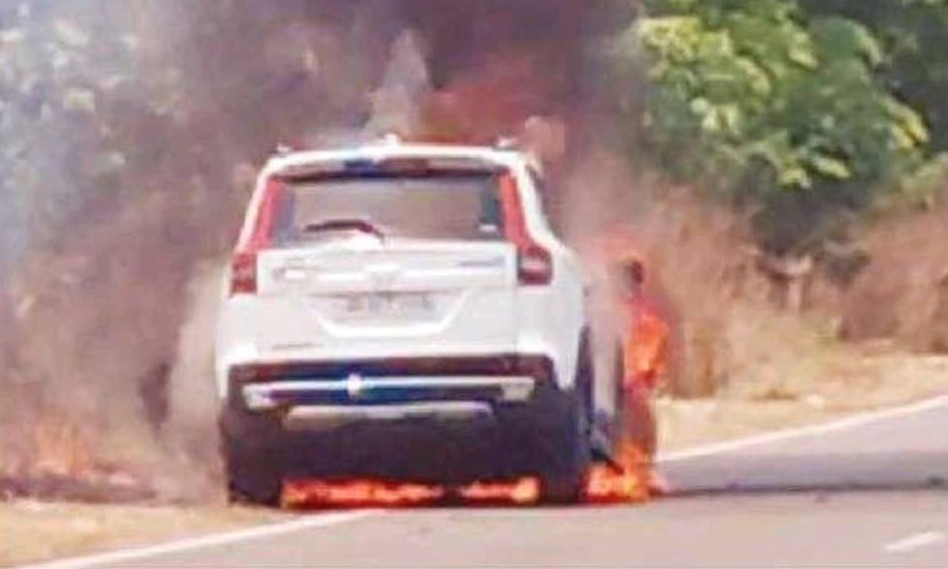ସିନ୍ଧେକେଲା ଥାନା ଶୁଣ୍ଢିମୁଣ୍ଡା ସ୍କୁଲ ନିକଟରେ ସର୍ଟ ସର୍କିଟ୍ ଯୋଗୁଁ ଜଳିଗଲା କାର ।