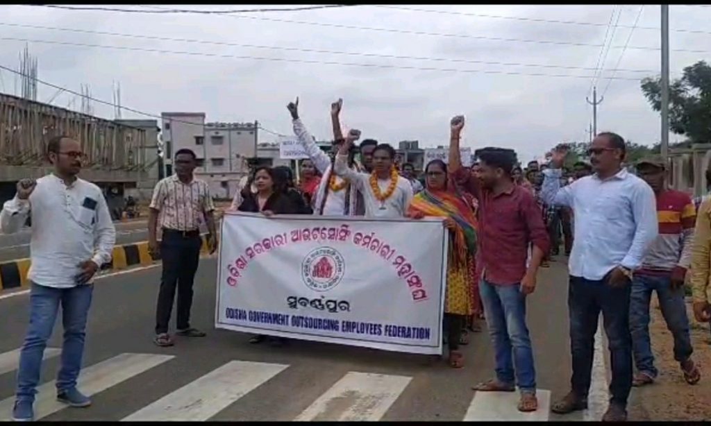 ସୁବର୍ଣ୍ଣପୁର ଜିଲ୍ଲା ସରକାରୀ ଆଉଟ ଶୋର୍ସିଙ୍ଗ କର୍ମଚାରୀ ସଂଘ ପକ୍ଷରୁ ୧୧ଦଫା ଦାବିନେଇ ଜିଲ୍ଲାପାଳ କାର୍ଯ୍ୟାଳୟ ଘେରାଓ