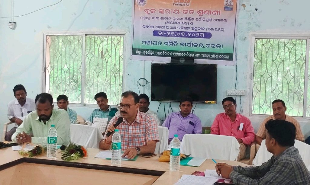 ତରଭା ବ୍ଲକ କାର୍ଯ୍ୟଳୟ ପରିସରରେ ସୁବର୍ଣ୍ଣପୁର ଏଡିଏମ ସୂର୍ଯ୍ୟ ନାରାୟଣ ଦାସଙ୍କ ଅଧ୍ୟକ୍ଷତାରେ ତରଭା ବ୍ଲକ ସ୍ତରୀୟ ଜନ ଶୁଣାଣି କାର୍ଯ୍ୟକ୍ରମ ଅନୁଷ୍ଠିତ ହୋଇ ଯାଇଛି ! ମହାତ୍ମା ଗାନ୍ଧୀ ଜାତୀୟ ଗ୍ରାମୀଣ ନିଶ୍ଚିତ କର୍ମ ନିଯୁକ୍ତି ଯୋଜନା ଓ ଜାତୀୟ ଖାଦ୍ୟ ସୁରକ୍ଷା ଆଇନ ସମ୍ୱନ୍ଧୀୟ ଜନ ଶୁଣାଣି ରେ ତରଭା ବ୍ଲକର ସମସ୍ତ ପଞ୍ଚାୟତର ପିଇଓ ମାନେ ନିଜ ପଞ୍ଚାୟତରେ ଆର୍ଥିକ ବର୍ଷ ୨୦୨୨/୨୩ ଉପରେ କାର୍ଯ୍ୟ ଖସଡ଼ା ସୂଚନା ପ୍ରଦାନ କରିଥିଲେ l ୨୩୬୨୩ଜଣ ଜବ କାର୍ଡଧାରୀ ଥିବାବେଳେ ସେମାନଙ୍କ ମଧ୍ୟରୁ ୧୦୪୦୦ ଜଣଙ୍କୁ କାର୍ଯ୍ୟ ଦେବାକୁ ଯୋଜନା ଥିବାବେଳେ ୧୦୩୯୫ ଜଣଙ୍କୁ ଏ ବର୍ଷ କାମ ଯୋଗାଇ ଦିଆଯାଇଛି, ସେମାନଙ୍କ ମଧ୍ୟରୁ ୩୮୬ପରିବାର ୧୦୦ ଦିନର କାର୍ଯ୍ୟ ଦିବସ ସମ୍ପୂର୍ଣ କରିଛନ୍ତି l ୨୦୨୨/୨୩ ଆର୍ଥିକ ବର୍ଷରେ ୩୨୮୧ଟି ପ୍ରକଳ୍ପ ମଧ୍ୟରୁ ୧୮୫୯ ଟିକୁ ସମ୍ପୂର୍ଣ କରାଯାଇଛି l ୪୪.୦୪ଶତକଡା ଜବକାର୍ଡ ଧାରୀ ମହିଳା ମାନେ ମନରେଗା ଯୋଜନାରେ କାମ କରିଛନ୍ତି l ଏହି ଅବସରରେ କାମ ସାରିବା ପରେ ଠିକ ସମୟରେ କେତେକଙ୍କ ପ୍ରାପ୍ୟ ପଡ଼ିନଥିବା ଅଭିଯୋଗ ହୋଇଥିଲା lକାର୍ଯ୍ୟକ୍ରମରେ ଯୋଗଦେଇ ସ୍ବେଚ୍ଛାସେବୀ ରାଜେନ୍ଦ୍ର ଝଙ୍କାର କହିଲେ ମନରେଗା ଆଇନ ଅନୁଯାୟୀ ପ୍ରତ୍ୟେକ ରାଜସ୍ୱ ଗ୍ରାମରେ ପଲ୍ଲୀସଭା ଅନୁଷ୍ଠିତ ହୋଇ ଶ୍ରମିକ ଅଟକଳ , କାର୍ଯ୍ୟ ଚିହ୍ନଟ ସହିତ ଆୟ ବ୍ୟୟ ଅଟକଳ ହୋଇ ଗ୍ରାମ ସଭାରେ ଗୋଟିଏ ଆର୍ଥିକ ବର୍ଷ ପାଇଁ ଗୃହୀତ ହେବାପରେ ବ୍ଲକକୁ ଆସିଥାଏ। ବ୍ଲକରେ କୋଡ଼ିଂ ହେବାପରେ ଜିଲ୍ଲାପାଳଙ୍କ ନିକଟକୁ ପଠାଇବାର ନିୟମ ରହିଛି।ହେଲେ ଏଠାରେ ଅଯଥାରେ ଟାଲଟୁଲ ନୀତି ଅବଲମ୍ବନ କରାଯାଉଥିବାରୁ ପ୍ରକଳ୍ପଟି ବିଳମ୍ବିତ ହେବାସହ ଶ୍ରମିକ ମାନଙ୍କୁ ଠିକ ସମୟରେ ପାଉଣା ମିଳୁନାହିଁ। କାର୍ଯ୍ୟକ୍ରମରେ ବି ଡି ଓ ଅନିଲ କୁଲୁ ସ୍ୱାଗତ ଭାଷଣ ଦେଇଥିବାବେଳେ ଏ ପି ଓ ଅମୃତାଂଶୁ ପାତ୍ର କାର୍ଯ୍ୟକ୍ରମ ପରିଚାଳନା କରିଥିଲେ, କାର୍ଯ୍ୟକ୍ରମରେ ସମସ୍ତ ପି ଇ ଓ, ଜି ଆର ଏସ, ଭି ଆର ପି, ସାମାଜିକ ସମୀକ୍ଷକ, ଗାଁ ସାଥି, ଓ ଜବକାର୍ଡ ଧାରୀ ମାନେ ଅଂଶଗ୍ରହଣ କରିଥିଲେ l ଏହି ଅବସରରେ ଶହେ ଦିନର କାର୍ଯ୍ୟ ସମ୍ପୂର୍ଣ କରିଥିବା ନଅ ଜଣ ଜବକାର୍ଡ ଧାରୀଙ୍କୁ ଅତିରିକ୍ତ ଜିଲ୍ଲାପାଳ ଶ୍ରୀ ଦାସ ସମ୍ବର୍ଦ୍ଧିତ କରିଥିଲେ।