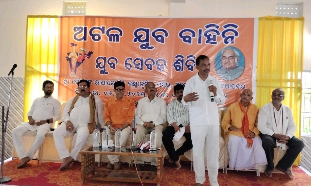 ଗୋପାଳପୁର,୦୬/୦୮ ଗୋପାଳପୁର ନିର୍ବାଚନମଣ୍ଡଳୀ ଅଟଳ ଯୁବ ବାହିନୀ ପକ୍ଷରୁ ୨ ଦିନିଆ ଯୁବ ସେବକ ଶିବିର ହଳଦିଆପଦର ସ୍ଥିତ ଲକ୍ଷ୍ମୀନୃସିଂହ ମନ୍ଦିର ପରିସରରେ ଉଦଘାଟିତ ହୋଇଯାଇଛି।ଏହି ଅବସରରେ ଆୟୋଜିତ କାର୍ଯ୍ୟକ୍ରମରେ ଗଞ୍ଜାମ ଜିଲ୍ଲା ବିଜେପି ସଭାପତି ବିଭୂତି ଭୂଷଣ ଜେନା ମୁଖ୍ୟ ଅତିଥି ଭାବେ ଯୋଗ ଦେଇ କାର୍ଯ୍ୟକ୍ରମ କୁ ଉଦଘାଟନ କରିଥିଲେ। ଅନ୍ୟ ମାନଙ୍କ ମଧ୍ୟରେ ଅବସର ପ୍ରାପ୍ତ ଭିଜିଲାନ୍ସ ଆରକ୍ଷୀ ଅଧିକ୍ଷକ ଦେବଦତ୍ତ ପଟ୍ଟନାୟକ, ହୃଷିକେଶ ପାଣିଗ୍ରାହୀ,ଅଟଳ ଯୁବ ବାହିନୀ ସଂଯୋଜକ ତଥା କୋଳଥିଗାଁ ସରପଞ୍ଚ ଜଗମୋହନ ପାତ୍ର, ଗଙ୍ଗାଧର ଶତପଥୀ, ଡ଼ ସୁବାଷ ସାହୁ,ଚିନ୍ମୟା ନନ୍ଦ ମହାରାଜ ପ୍ରମୁଖ ମଞ୍ଚାସିନ ରହି ଉପସ୍ଥିତ ଅଟଳ ଯୁବ ବାହିନୀ ର ସଦସ୍ୟ ମାନଙ୍କୁ ଦେଶ ମାତୃକା ର ସେବା କରିବା ପାଇଁ ଆଗେଇ ଆସିବା ସହ ନିଜ ନିଜ ଅଞ୍ଚଳର ଲୋକଙ୍କ ସେବାରେ ନିଜକୁ ସମର୍ପିତ କରିବାକୁ ମତପୋଷଣ କରିଥିଲେ।ସଭା ପ୍ରାରମ୍ଭ ପୂର୍ବରୁ ବିଭିନ୍ନ ଗ୍ରାମରୁ ଆସିଥିବା ସଦସ୍ୟ ମାନେ ଏକ ରାଲିରେ କାର୍ଯ୍ୟକ୍ରମ ସ୍ଥଳରେ ପହଞ୍ଚି ଥିଲେ।ଯୁବ ସେବକ ଶିବିର ରେ ଯୋଗଦାନ କରିଥିଲା ସଦସ୍ୟ ମାନଙ୍କୁ କସରତ ର ଶିକ୍ଷା ପ୍ରଦାନ ସହ ଯୋଗ ପ୍ରଶିକ୍ଷଣ ମଧ୍ୟ ପ୍ରଦାନ କରାଯାବ