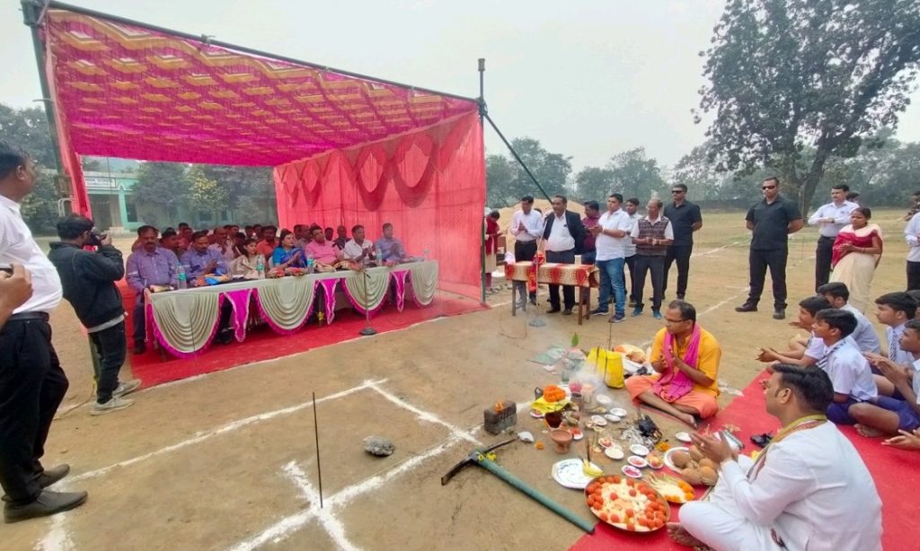 ଠେଲକଲୋଇ ହାଇସ୍କୁଲ ନିର୍ମାଣ ପାଇଁ ଭିତ୍ତିପ୍ରସ୍ତର ସ୍ଥାପନା।