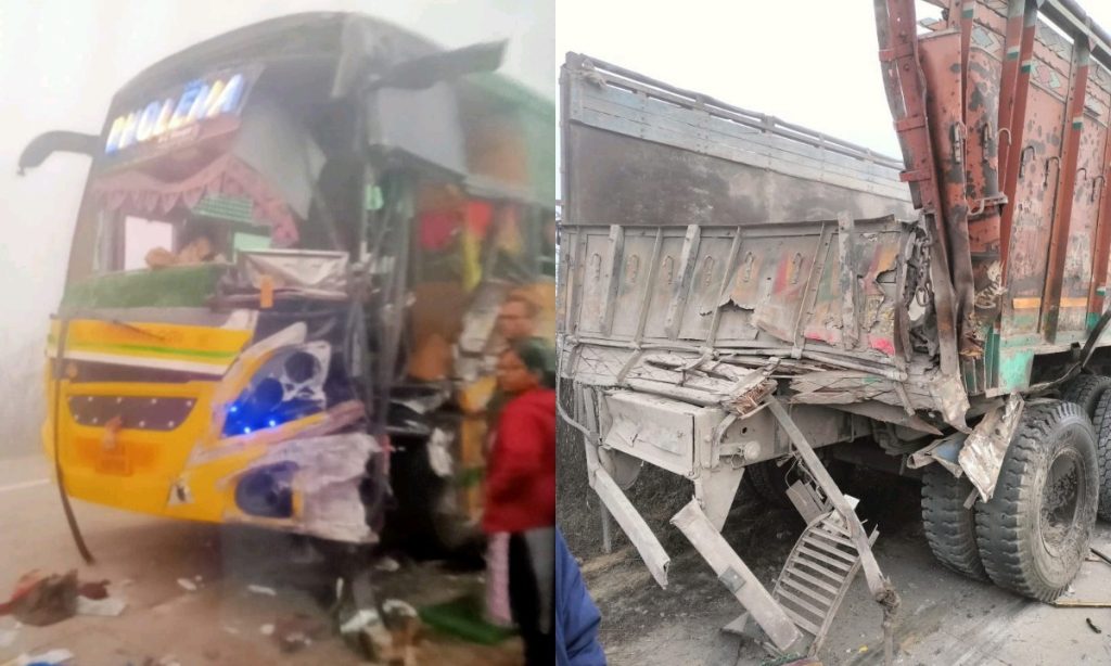 ଘନ କୁହୁଡି ଯୋଗୁଁ ଟ୍ରକ କୁ ପଛପଟୁ ପିଟିଲା ପିକନିକ ବସ