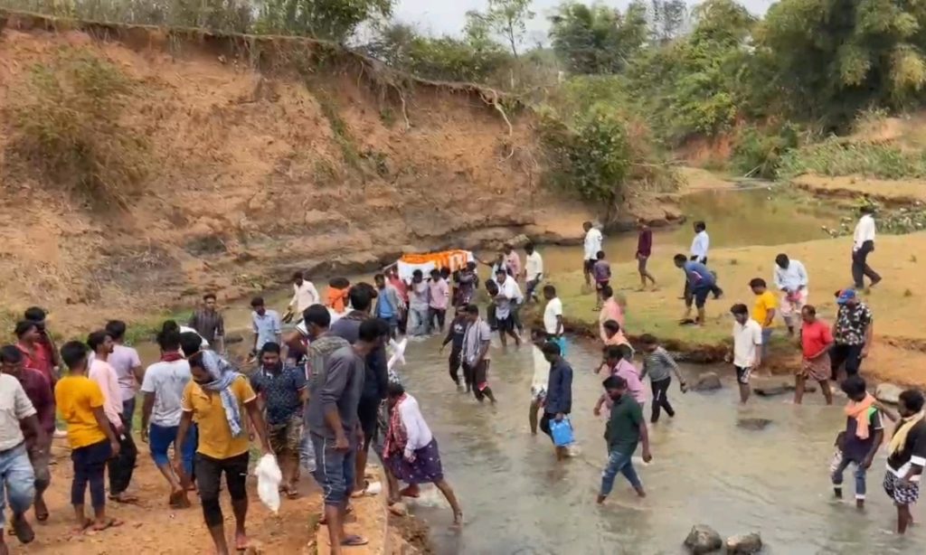 ଲକ୍ଷ୍ମୀପୁର ୧୩/୦୩ .. ଭରା ନଦୀରେ ପାର ହୋଇ ପୁଣି ଶବ ସଂସ୍କାର ଭଳି ଦୃଶ୍ୟ ଦେଖିବାକୁ ମିଳିଛି କୋରାପୁଟ ଜିଲ୍ଲା ଲକ୍ଷ୍ମୀପୁର ବ୍ଳକ ଅନ୍ତର୍ଗତ କୁସୁମଗୁଡା ଗ୍ରାମ ପଞ୍ଚାୟତ ର କେଲାର ଗାଁ ରେ। ଆଜି ଗାଁ ର ବୟୋଜ୍ୟାଷ୍ଟ ବ୍ୟକ୍ତି ତଥା