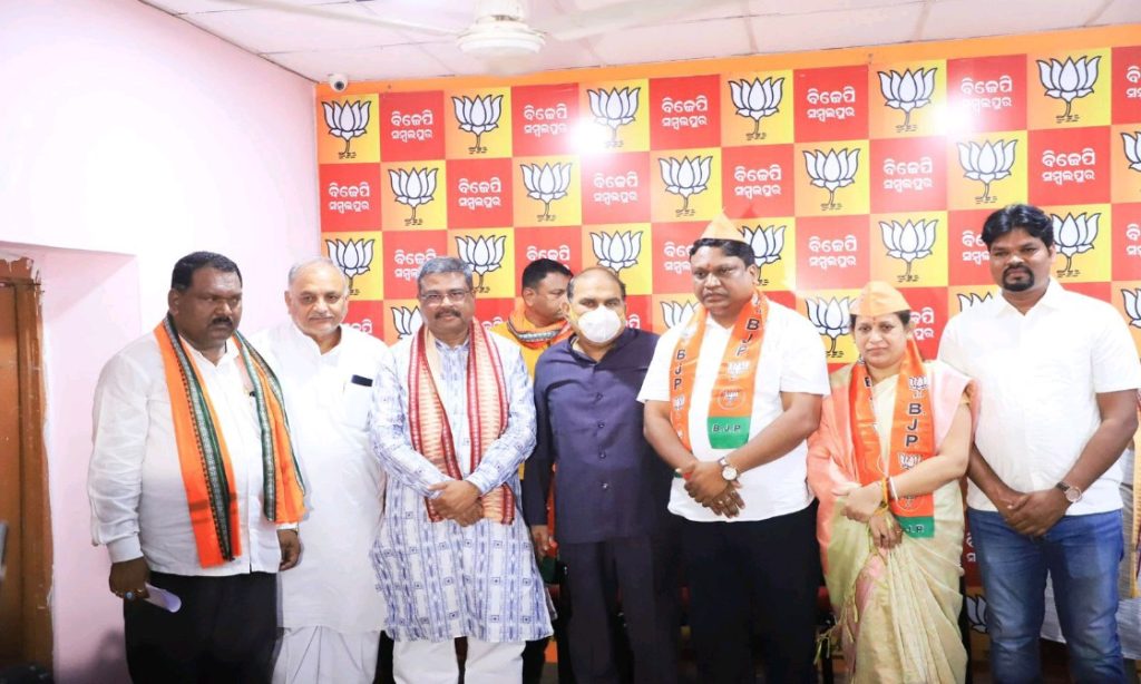 ସମ୍ବଲପୁର:ସମ୍ବଲପୁରରେ ରବିବାର ଆୟୋଜିତ ମିଶ୍ରଣ ପର୍ବରେ କେନ୍ଦ୍ରମନ୍ତ୍ରୀ ଧର୍ମେନ୍ଦ୍ର ପ୍ରଧାନଙ୍କ ଉପସ୍ଥିତିରେ ବିଜେଡିର ସମ୍ବଲପୁର ଜିଲ୍ଲା ଏସଟି-ଏସସି ସେଲ୍ ସଭାପତି ମୋତିଲାଲ ତନ୍ତୀ ଓ ତାଙ୍କ ଧର୍ମପତ୍ନୀ ତଥା ବିଜେଡି ନେତ୍ରୀ ରୀନା ତନ୍ତୀ ଦଳରେ ଯୋଗଦେଇଛନ୍ତି ।