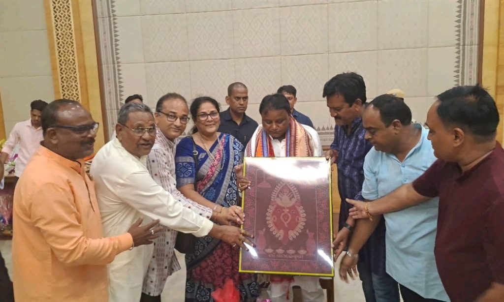 ମୁଖ୍ୟମନ୍ତ୍ରୀ ଶ୍ରୀ ମୋହନ ମାଝୀଙ୍କୁ ସମ୍ବଲପୁର ବିଜେପି ପକ୍ଷରୁ ମାଁ ସମଲେଇ ଙ୍କ ବାନ୍ଧ କଳା ପ୍ରତିକୃତି ପ୍ରଦାନ