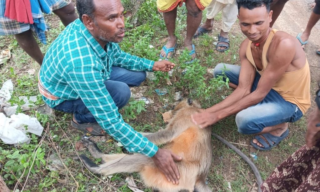 ଗୁରୁତର ହନୁମାଙ୍କଡ଼ କୁ ଉଦ୍ଧାର କରି ପ୍ରାଥମିକ ଚିକିତ୍ସା ପରେ ବନ ବିଭାଗ କୁ ହସ୍ତାନ୍ତର କଲେ ସ୍ଥାନିୟ ଲୋକେ