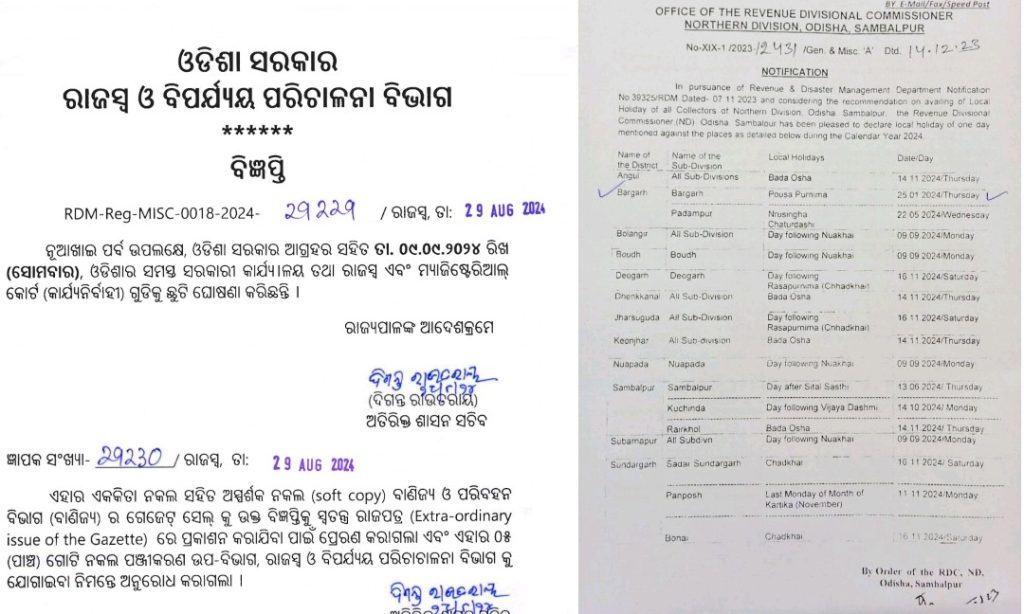 ୧୦ ତାରିଖ ନୂଆଖାଇ ଛୁଟି ଘୋଷଣା ପାଇଁ ରାଜସ୍ବ ଅମଲା ସଂଘ ପକ୍ଷରୁ ଦାବୀ