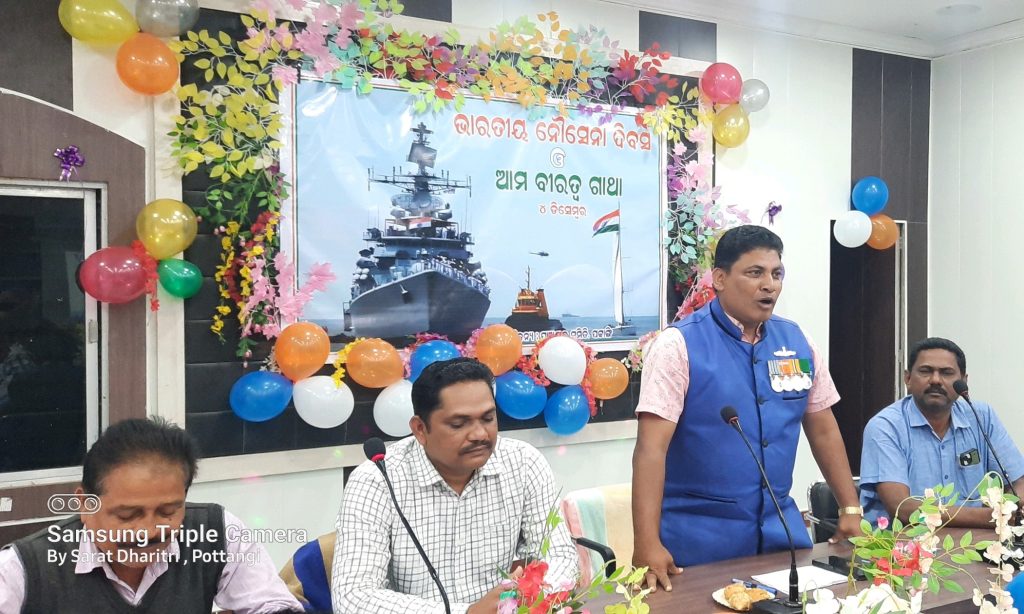 ପଟ୍ଟାଙ୍ଗି୦୫/୧୨ସାରା ଭାରତରେ ଡିସେମ୍ବର ୦୪ ତାରିଖକୁ ଭାରତୀୟ ନୈସେନା ଦିବସ ଭାବେ ପାଳନ କରା ଯାଉଥିବା ବେଳେ କୋରାପୁଟ ଜିଲ୍ଲାର ପଟ୍ଟାଙ୍ଗି ବ୍ଲକ କାର୍ଯ୍ୟାଳୟରେ ମଧ୍ୟ ଉକ୍ତ ଦିବସ ପାଳନ ହୋଇଥିଲା । ଉକ୍ତ ଦିବସ କୁ ନେଇ ଆୟୋଜିତ କାର୍ଯ୍ୟକ୍ରମ ପୁର୍ବରୁ ସହିତ ନୈସେନା ଙ୍କ ଉଦ୍ଦେଶ୍ୟରେ ଦୁଇ ମିନିଟ୍ ନିରବ ପ୍ରାଥନା କରା ଯାଇଥିଲା । ଏହାପରେ ନୈସେନା ରେ ଦୀର୍ଘ ୧୫ ବର୍ଷ କାର୍ଯ୍ୟ କରି ଅବସର ଗ୍ରହଣ କରିବା ପ୍ରଶାସନିକ ଦାଇତ୍ଵ ଗ୍ରହଣ କରିଥିବା ସ୍ଥାନୀୟ ଗୋଷ୍ଠୀ ଉନ୍ନୟନ ଅଧିକାରୀ ସୁକାନ୍ତ କୁମାର ପଟ୍ଟନାୟକ ଅଧ୍ୟକ୍ଷତାରେ ବ୍ଲକ ସଭା ଗୃହରେ ଆୟୋଜିତ ଉକ୍ତ କାର୍ଯ୍ୟକ୍ରମ ରେ ସ୍ଥାନୀୟ ଓଡିଶା ଆଦର୍ଶ ମହାବିଦ୍ୟାଳ , ଗାଙ୍ଗେଶ୍ୱରୀ ଉଚ୍ଚ ମାଧ୍ୟମିକ ବିଦ୍ୟାଳୟ ଏବଂ ଡିଗ୍ରୀ ମହାବିଦ୍ୟାଳୟ ପ୍ରମୁଖ ଶିକ୍ଷା ଅନୁଷ୍ଠାନ ରୁ ଯୋଗ ଦେଇଥିବା ଛାତ୍ରଛାତ୍ରୀ ଙ୍କୁ ଭାରତୀୟ ନୈସେନା ଦେଶପାଇଁ  କେଉଁ ପ୍ରକାର ବଳିଦାନ ଦେଇଛି । ସେହି ଆଧାରିତ ଏକ ଚଳଚ୍ଚିତ୍ର ବା ଭିଡିଓ ଉପସ୍ଥିତ ଛାତ୍ରଛାତ୍ରୀ ଙ୍କୁ ଦେଖାଇ କିଛି ଶିକ୍ଷା ଲାଭ କରିଥିଲେ । ଏହାପରେ ଇଣ୍ଡିଆନ୍ ଆର୍ମି ରେ ଦୀର୍ଘ ୧୭ ବର୍ଷ କାର୍ଯ୍ୟ କରି ଅବସର ଗ୍ରହଣ କରିବା ପରେ ରାଜ୍ୟ ସରକାରଙ୍କ ଦାଇତ୍ଵ ବାନ ବିଭାଗରେ ଦାଇତ୍ଵ ଗ୍ରହଣ କରିଥିବା ବିଏସଏସଓ ସୁଧିର କୁମାର ସାହୁ ଇଣ୍ଡିଆନ୍ ଆର୍ମି ରେ କାର୍ଯ୍ୟ କରୁଥିବା ସମୟର ଅନେକ କିଛି ଦାଇତ୍ଵ ପୁର୍ଣ୍ଣ ତଥ୍ୟ ସମ୍ପର୍କରେ ସୂଚନା ପ୍ରଦାନ କରିବା ସହ ଦେଶ ପାଇଁ ବଳିଦାନ ଦେଇଥିବା ସେନା ମାନଙ୍କର ଦେଶ ପାଇଁ କି ପ୍ରକାର ବଳିଦାନ ଦେଇଛନ୍ତି ଏହା ଉପରେ ବୁଝାଇ ଛାତ୍ରଛାତ୍ରୀ ଙ୍କୁ ଦେଶର ସୁରକ୍ଷା ନିମନ୍ତେ ଆଗେଇ ଆସିବା ନିମନ୍ତେ ଆହ୍ୱାନ ଦେଇଥିଲେ । ସେହିପରି ଭାରତୀୟ ନୈସେନା ରେ କାର୍ଯ୍ୟ କରି ଅବସର ନେଇଥିବା ବିଡ଼ିଓ ପଟ୍ଟନାୟକ ଭାରତୀୟ ନୈସେନା ରେ ଦେଶ ପାଇଁ କି ପ୍ରକାର ଅବଦାନ ରହିଛି ସେନେଇ ବୁଝାଇବା ସହ ନୈସେନା ରେ ବ୍ୟବହୃତ ହେଉଥିବା ବିଭିନ୍ନ ଜାହାଜର କାର୍ଯ୍ୟ ଉପରେ ପୁଙ୍ଖାନୁପୁଙ୍ଖ ଭାବେ ବୁଝାଇ ଉପସ୍ଥିତ ଛାତ୍ରଛାତ୍ରୀ ଙ୍କୁ ଆକୃଷ୍ଟ କରାଇଥିଲେ । ଏହିପରି କି ନିଜେ କାର୍ଯ୍ୟ କରୁଥିବା ସମୟରେ ସାମ୍ନା କରିଥିବା ବିଭିନ୍ନ ସମସ୍ୟା ସମ୍ପର୍କରେ ଉପସ୍ଥାପନ କରି ଛାତ୍ରଛାତ୍ରୀ ଙ୍କୁ ଶିକ୍ଷା ପ୍ରଦାନ କରିଥିଲେ । ଉକ୍ତ କାର୍ଯ୍ୟକ୍ରମ ରେ ଜିପିଓ କିରଣ ଚନ୍ଦ୍ର ସାହୁ , ପିଇଓ ଦିବାକର ପୁରୋହିତ ଙ୍କ ସମେତ ଗାଙ୍ଗେଶ୍ୱରୀ ଉଚ୍ଚ ମାଧ୍ୟମିକ ବିଦ୍ୟାଳୟର ଅଧ୍ୟାପକ ଶେଷଦେବ ବାରିକ , ଡିଗ୍ରୀ ମହାବିଦ୍ୟାଳୟର କର୍ମଚାରୀ ଓ ବ୍ଲକର ଅନ୍ୟ କର୍ମଚାରୀ ଉପସ୍ଥିତ ରହି ଉକ୍ତ ମୁହୂର୍ତ୍ତପୁର୍ଣ୍ଣ ଦୃଶ୍ୟ ଓ କାର୍ଯ୍ୟକ୍ରମ କୁ ଉପଭୋଗ କରିଥିଲେ । ପରିଶେଷରେ ସମସ୍ତ ଛାତ୍ରଛାତ୍ରୀ ଙ୍କୁ ଏହିପରି ସୁଯୋଗ ମିଳିଲେ କେବେହେଲେ ହାତ ଛଡ଼ା ନକରିବା କୁ ବିଡ଼ିଓ ପଟ୍ଟନାୟକ ପରାମର୍ଶ ଦେଇଥିଲେ ।