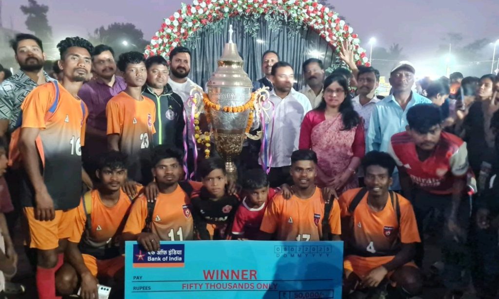 ସମ୍ବଲପୁର: ମହାନଗର ନିଗମ ଅନ୍ତର୍ଗତ ଧନକଉଡ଼ା ଫୁଟବଳ ପଡିଆ ଠାରେ ଗେଙ୍ଗୁଟିପାଲି ଏବଂ ଧନକଉଡ଼ା ଫୁଟବଲ କ୍ଳବ ପକ୍ଷରୁ ଅନୁଷ୍ଠିତ ୩ଦିନିଆ ଫୁଟବଳ ପ୍ରତିଯୋଗିତା ଆଜି ଉଦଯାପିତ ହୋଇଯାଇଛି l ଏହି ଉଦଯାପନୀ ସମାରୋହରେ ମୁଖ୍ୟ ଅତିଥି ଭାବରେ ରେଙ୍ଗାଲି ବିଧାୟକ ସୁଦର୍ଶନ ହରିପାଳ ଯୋଗ ଦେଇଥିଲେ l ସମ୍ମାନିତ ଅତିଥି ଭାବରେ ଜଗନ୍ନାଥ ତ୍ରିପାଠୀ,ରଜନୀକାନ୍ତ ସାହୁ, ହୀରାଲାଲ ବେହେରା ଓ ଅମିତ ନାଥ ଯୋଗ ଦେଇଥିଲେ l ଧନକଉଡ଼ା ପଡିଆ ଠାରେ ୩ ଦିନ ଧରି ଚାଲିଥିବା ଫୁଟବଳ ପ୍ରତିଯୋଗିତା ର ଫାଇନାଲ ମେଚ ଟି ଆଜି ଅନୁଷ୍ଠିତ ହୋଇଥିଲା l ସମ୍ବଲପୁର ଜିଲ୍ଲାର ବିଭିନ୍ନ ଅଞ୍ଚଳରୁ ୧୬ଟି ଟିମ ଏହି ପ୍ରତିଯୋଗିତାରେ ଭାଗ ନେଇଥିବା ବେଳେ ସରଳା ଏବଂ ମିର୍ଗାମୁଣ୍ଡା ଫୁଟବଲ ଟିମ ଏହି ପ୍ରତିଯୋଗିତାର ଫାଇନାଲ ରେ ପହଞ୍ଚିଥିଲେ l ଦୁଇ ଟିମ ମଧ୍ୟରେ ଫାଇନାଲ ମେଚରେ କଡା ସଂଘର୍ଷ ହୋଇଥିଲା।ଶେଷରେ ସରଳା ଫୁଟବଲ ଟିମ ମିର୍ଗାମୁଣ୍ଡା ଟିମ କୁ ୩-୦ରେ ହରାଇ ବିଜୟୀ ହୋଇଥିଲା l ଫାଇନାଲ ବିଜୟୀ ସରଳା ଫୁଟବଲ ଟିମ କୁ ମୁଖ୍ୟଅତିଥି ରେଙ୍ଗାଲି ବିଧାୟକ ସୁଦର୍ଶନ ହରିପାଳଙ୍କ ସହ ସମସ୍ତ ସମ୍ମାନିତ ଅତିଥି ମାନେ ୫୦ ହଜାର ଟଙ୍କାର ଚେକ ଏବଂ ବିଜୟୀ କପ ପ୍ରଦାନ କରିଥିଲେ l ସେହିପରି ଉପ ବିଜେତା ଟିମ ମିର୍ଗାମୁଣ୍ଡା କୁ ରାଜ୍ୟ ବିଜୁ ଯୁବ ଜନତା ଦଳର ସାଧାରଣ ସମ୍ପାଦକ ହୀରାଲାଲ ବେହେରା ଙ୍କ ସହିତ ସମସ୍ତ ସମ୍ମାନିତ ଅତିଥି ମାନେ ୩୦ ହଜାର ଟଙ୍କାର ଚେକ ଏବଂ ଟ୍ରଫି ପ୍ରଦାନ କରିଥିଲେ l ଏହି ୩ ଦିନିଆ ଫୁଟବଲ ପ୍ରତିଯୋଗିତା ରେ ଅନିତା ଓରାମ,ବୁଲୁ ସାହୁ,ପପୁ ନାଏକ,ଧରଣୀ ଓରାମ ଓ ଗେଙ୍ଗୁଟିପାଲି ଧନକଉଡ଼ା ଫୁଟବଳ କ୍ଳବର ବହୁ ସଦସ୍ୟ ମାନେ ସହଯୋଗ କରିଥିଲେ l ଏହି ଫୁଟବଲ ପ୍ରତିଯୋଗିତା କୁ ୩ ଦିନ ଧରି ହଜାର ହଜାର ସଂଖ୍ୟାରେ ବହୁ ଫୁଟବଲ ପ୍ରେମୀ ଉପସ୍ଥିତ ରହି ଉପଭୋଗ କରିଥିଲେ।