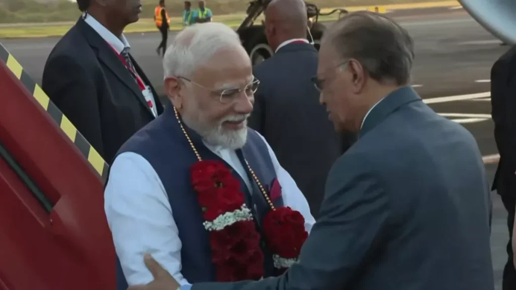 ନୂଆଦିଲ୍ଲୀ: ପ୍ରଧାନମନ୍ତ୍ରୀ ନରେନ୍ଦ୍ର ମୋଦି ମରିସସରେ ପହଞ୍ଚିଛନ୍ତି ଏବଂ ତାଙ୍କୁ ବିମାନବନ୍ଦରରେ ଭବ୍ୟ ସ୍ୱାଗତ କରାଯାଇଥିଲା।