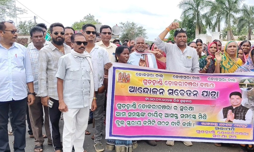 କଳାହାଣ୍ଡି ଜିଲ୍ଲା କୋକସରା ବ୍ଲକ ଡୁଡୁକାଠେଙ୍ଗା ପଞ୍ଚାୟତ ଅନ୍ତର୍ଗତ ସାହାଜଖୋଲ ଜଙ୍ଗଲ ମଧ୍ୟରେ ଅବସ୍ଥିତ ଗୁଡ଼ହାଣ୍ଡି ଡୋକରିଚଞ୍ଚରା ପର୍ଯ୍ୟଟନ ସ୍ଥଳୀ ର ସୁରକ୍ଷା, ପର୍ଯ୍ୟଟନ ସ୍ଥଳୀ ର ମାନ୍ୟତା ଦାବି, ଇକୋ ଟୁରିଜମ ମାନ୍ୟତା,ପ୍ରାଗ ଐତିହାସିକ ଗୁଡ଼ହାଣ୍ଡି ଶିଳାଲିପି ର ସଂରକ୍ଷଣ,ଭିତ୍ତିଭୂମି ବିକାଶ,ପରିଚାଳନା ପାଇଁ ଜିଲ୍ଲାପାଳ ଙ୍କ ଅଧ୍ୟକ୍ଷତାରେ ଟ୍ରଷ୍ଟ ବୋର୍ଡ ଗଠନ, ସଂରକ୍ଷିତ ଜଙ୍ଗଲ ମଧ୍ୟରେ ମକା ମାଫିଆ ଙ୍କୁ ଦମନ,ରକ୍ଷଣାବେକ୍ଷଣ ପାଇଁ ଟ୍ରଷ୍ଟ କୁ ଦାୟିତ୍ୱ ହସ୍ତାନ୍ତର ଭଳି ଦାବି ସମୂହ କୁ ନେଇ ଗୁଡ଼ହାଣ୍ଡି, ଡୋକାରିଚଞ୍ଚରା ସୁରକ୍ଷା ମଞ୍ଚ ର ସଭାପତି ରାଜେନ୍ଦ୍ର ନାଏକ ଙ୍କ ନେତୃତ୍ୱରେ ବ୍ଲକ ର ବିଭିନ୍ନ ପଞ୍ଚାୟତ ରୁ ଶତାଧିକ ମହିଳା,ପୁରୁଷ ବଙ୍ଗୋମୁଣ୍ଡା ଛକ ରୁ ଏକ ବିରାଟ ଶୋଭାଯାତ୍ରାରେ ପର୍ଯ୍ୟଟନ ସ୍ଥଳୀ ର ସୁରକ୍ଷା ନେଇ ବିଭିନ୍ନ ନାରାବାଜି କରି କୋକସରା ବସଷ୍ଟାଣ୍ଡ ନିକଟରେ ଏକ ପଥପ୍ରାନ୍ତ ସଭା ରେ ସୁରକ୍ଷା ମଞ୍ଚ ର ସଭାପତି ରାଜେନ୍ଦ୍ର ନାଏକ ଙ୍କ ସଭାପତିତ୍ୱ ରେ ମଞ୍ଚ ରେ ପୂର୍ବତନ ଗୁଡ଼ହାଣ୍ଡି ଡୋକାରିଚଞ୍ଚରା ଉନ୍ନୟନ କମିଟି ର ସଭାପତି ଭଦରେଶ୍ୱର ପାତ୍ର,ଶିକ୍ଷାବିଦ ଅଶୋକ କୁମାର ଦାସ,ସଚେତନ ନାଗରିକ ନିମାଇଁ ଚରଣ ଧଙ୍ଗଡାମାଝୀ, ମହିମା ପଞ୍ଚାୟତ ସମିତି ସଭ୍ୟ ଘନଶ୍ୟାମ ନାଏକ,ବିଜେପି ନେତା ଗରୁଡ ଧ୍ଵଜ ମାଝୀ ଓ ଅନ୍ୟ କର୍ମକର୍ତ୍ତା ମାନେ ପର୍ଯ୍ୟଟନ ସ୍ଥଳୀ ର ସୁରକ୍ଷା ଓ ପରିଚାଲନା କୁ ନେଇ ଜିଲ୍ଲା ପ୍ରଶାସନ ନିକଟରେ ଦାବି ରଖିଛନ୍ତି। ପରେ କୋକସରା ବିଡ଼ିଓ ଡ଼. ହିମାଞ୍ଚଳ ମାଝୀ ଙ୍କୁ ଭେଟି ଏକ ଦାବିପତ୍ର ମାନ୍ୟବର ମୁଖ୍ୟମନ୍ତ୍ରୀ ଙ୍କ ଉଦ୍ଦେଶ୍ୟ ରେ ଏକ ଦାବିପତ୍ର ପ୍ରଦାନ କରିଛନ୍ତି। ସୁରକ୍ଷା ମଞ୍ଚ ର ଏହି କାର୍ଯ୍ୟକ୍ରମ ରେ ଟେମରା ସରପଞ୍ଚ କ୍ଷିତିରାମ ପାତ୍ର,ମହିମା ସରପଞ୍ଚ ଇଶ ରାମ କୋଲଥିଆ,କୈଳାସ ଚଳାନ, ଶମ୍ଭୁ ମାଝୀ, ପବିତ୍ର ନାଏକ ଅନିରୁଦ୍ଧ ମାଝୀ, ଚକାଡୋଳା ପାତ୍ର,ଯତୀନ୍ଦ୍ର ମାଝୀ, ଲିଙ୍ଗରାଜ ଳଦୁଆ, ଘନଶ୍ୟାମ ନାଏକ, ଶ୍ୟାମ ସୁନ୍ଦର ନାଏକ, କ୍ଷୀରସିନ୍ଧୁ ହଂସ, ଦୁଷ୍ମନ୍ତ ପାତ୍ର, ହେମନ୍ତ କୁମାର ବାଣୁଆ ସମେତ ଶତାଧିକ ଜନ ସାଧାରଣ କାର୍ଯ୍ୟକ୍ରମ ରେ ସାମିଲ ରହି ପର୍ଯ୍ୟଟନ ସ୍ଥଳୀ ର ସୁରକ୍ଷା ଦାବି କରିଥିଲେ।
