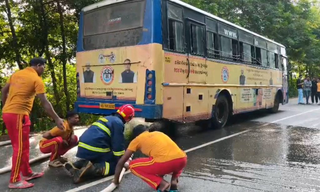 ଯାତ୍ରୀବାହୀ ବସ ଇଞ୍ଜିନ ରୁ ବାହାରିଲା ଧୁଆଁ , ଅଳ୍ପକେ ବର୍ତ୍ତିଲେ ଯାତ୍ରୀ।