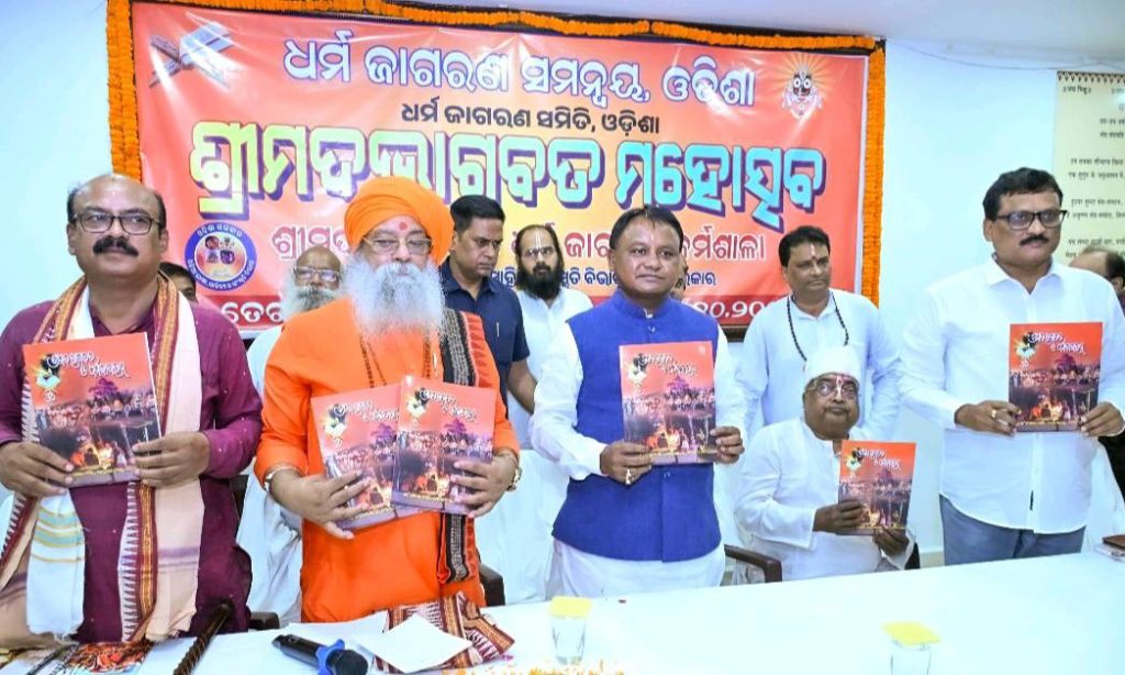 ଭୁବନେଶ୍ୱର:ଧର୍ମ ଜାଗରଣ ସମିତି, ଓଡ଼ିଶା ପକ୍ଷରୁ ଆଜି ଭୁବନେଶ୍ବରର କଟକ ରୋଡ ସ୍ଥିତ ତେରାପନ୍ଥ ଭବନ ଠାରେ ଆୟୋଜିତ ଶ୍ରୀମଦ୍ ଭାଗବତ ମହୋତ୍ସବରେ ମୁଖ୍ୟମନ୍ତ୍ରୀ ଶ୍ରୀ ମୋହନ ଚରଣ ମାଝୀ ଯୋଗ ଦେଇ ପ୍ରତ୍ୟେକ ଓଡ଼ିଆ ଘରେ ଭାଗବତ ଏବଂ ପ୍ରତ୍ୟେକ ଗାଁର ଭାଗବତ ଟୁଙ୍ଗି ମାନଙ୍କର ପୁନରୁଦ୍ଧାର ଓ ପ୍ରତିଷ୍ଠା କରିବା ପାଇଁ ରାଜ୍ୟ ସରକାର ପ୍ରତିଶ୍ରୁତିବଦ୍ଧ ବୋଲି କହିଥିଲେ। ମୁଖ୍ୟମନ୍ତ୍ରୀ ଏହାଏ ମଧ୍ୟ କହିଥିଲେ ଯେ ଯୁବବର୍ଗ ଆଜିର ସମାଜର ସମସ୍ତ ବିକାଶରେ ମୁଖ୍ୟ ଭୂମିକା ନିଭାଇଥାନ୍ତି ଏଣୁ ସେମାନଙ୍କୁ ଏହି ମାର୍ଗରେ ନେବା ପାଇଁ ଭାଗବତ ପାଠ ଏକ ବଳିଷ୍ଠ ମାଧ୍ୟମ।