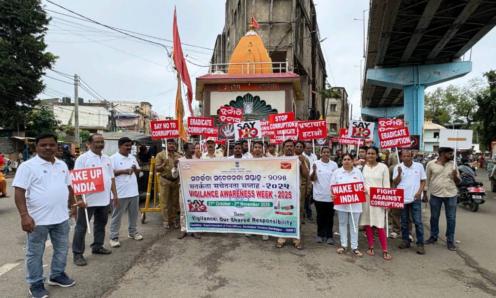 ସମ୍ବଲପୁର: ସତର୍କତା ସଚେତନତା ସପ୍ତାହ ୨୦୨୫ ର ଅଂଶ ଭାବରେ, ସମ୍ବଲପୁର ଡାକ ବିଭାଗ ଗ୍ରାହକ ସଚେତନତା ଏବଂ ସାର୍ବଜନୀନ ସେବାରେ ସଚ୍ଚୋଟତାକୁ ପ୍ରୋତ୍ସାହିତ କରିବା ପାଇଁ ଏକ ପ୍ରେରଣାଦାୟକ ୱାକାଥନ୍ ଆୟୋଜନ କରିଥିଲା। ଏହି ପଦଯାତ୍ରା ପିଏମଜି ଅଫିସରୁ ଆରମ୍ଭ ହୋଇ ଜେଲ୍ ଚୌକ୍, ଗୋଲେବଜାର, ମ୍ୟୁନିସିପାଲିଟି ଚୌକ୍ ଏବଂ ନେଲସନ୍ ମାଣ୍ଡେଲା ଚୌକ୍ ଦେଇ ଗତି କରିଥିଲା, ଯେଉଁଥିରେ ଡାକ କର୍ମଚାରୀ ଏବଂ ଜନସାଧାରଣଙ୍କ ଉତ୍ସାହୀ ଅଂଶଗ୍ରହଣ ଦେଖିବାକୁ ମିଳିଥିଲା।