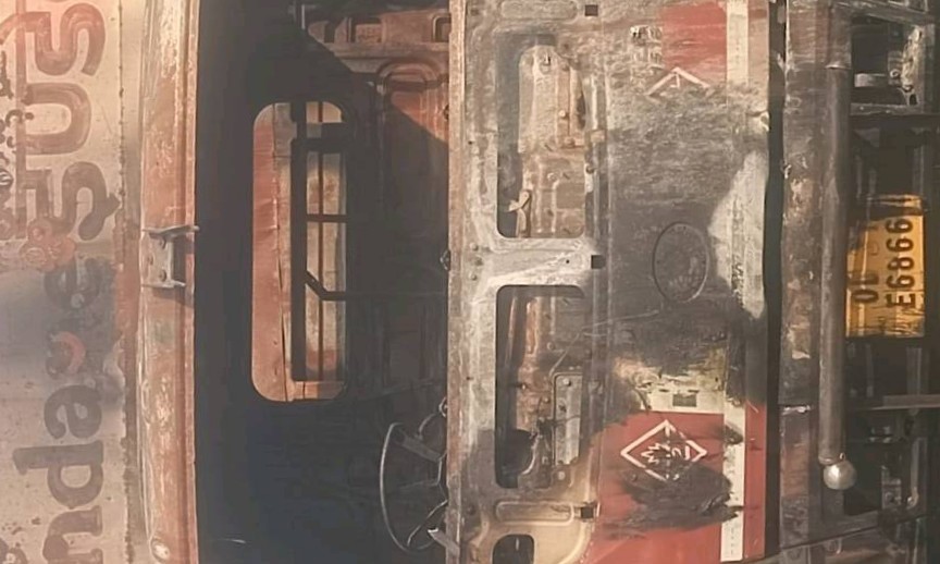 ସୁବର୍ଣ୍ଣପୁର ଜିଲ୍ଲା ବୀରମହାରାଜପୁର ଜଟେସିଂହl ହରିହର ଯୋର ବ୍ରିଜ ପାଖରେ ଗତକାଲି ରାତ୍ରୀରେ ଏକ ଇଣ୍ଡିଆନ ଗ୍ୟାସ୍ ବୋଝାଇ ଟ୍ରକ୍ ଗଲାବେଳେ କୌଣସି କାରଣରୁ ହଠାତ୍ ନିଆ ଲାଗି ଜଳି ଯାଇଥିଲା l ଫଳରେ ଗାଡ଼ି ଡ୍ରାଇଭର ଓ ହେଲ୍ପର ଗାଡିରୁ ବହାରି ଅଳ୍ପକେ ବଞ୍ଚି ଯାଇଥିଲେ l ଖବରପାଇ ଗାଆଁ ପlଖଲୋକ ନିଆ କୁ ଆୟତ୍ତ କରାଇବାକୁ ଚେଷ୍ଟା କରିଥିଲେହେଁ କରିପାରିନଥିଲେ l ଖବରପାଇ ବୀରମହାରାଜପୁର ଅଗ୍ନିଶମ ବାହିନୀର କର୍ମଚାରୀ ପହଞ୍ଚି ବହୁ ସମୟପରେ ନିଆକୁ ଆୟତ୍ତ କରିଥିଲେ l ମିଳିଥିବା ସୂଚନା ଅନୁସାରେ ଟ୍ରକ୍ ନଂ -OD 31E 6865ଟି ରେଢ଼ାଖୋଲ ପଟୁ ବୀରମହାରାଜପୁର ଆଡକୁ ଆସୁଥିବାବେଳେ ଏହି ଘଟଣା ଘଟି ଥିଲା l ମାତ୍ର ଗ୍ୟାସ୍ ବୋଝେଇ ଟ୍ରକ ଟି ଅଧା ପୋଡିଯାଇଥିବା ଦେଖିବାକୁ ମିଳିଥିଲା , ଗ୍ୟାସ ଭର୍ତ୍ତି ଟାଙ୍କିରେ ନିଆ ଲାଗି ପାରି ନ ଥିଲା , ନ ହେଲେ ବଡ଼ ଦୁର୍ଘଟଣା ଘଟି ଯାଇଥାନ୍ତା ବୋଲି ପ୍ରତ୍ୟେକ୍ଷଦର୍ଶୀ ମାନେ କୁହନ୍ତି l