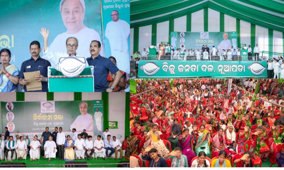 ନୂଆପଡା:ବିଜୁ ଜନତା ଦଳ ର ସଭାପତି ଶ୍ରୀ ନବୀନ ପଟ୍ଟନାୟକ ଆଜି ନିର୍ବାଚନ ପ୍ରଚାର ପାଇଁ ନୂଆପଡା ରେ ପହଂଚିଛନ୍ତି |କୋମନା ବ୍ଲକ ର ତାରାବୋଡ଼,ଧାନମଣ୍ଡି ପଡିଆ ରେ ଆୟୋଜିତ ବିରାଟ ନିର୍ବାଚନୀ ସଭାରେ ଯୋଗ ଦେଇଥିବା ହଜାର ହଜାର ଲୋକ ଙ୍କୁ ଉଦବୋଧନ ଦେଇ ନୂଆପଡା ଉପନିର୍ବାଚନ ରେ ବିଜେଡି ପ୍ରାର୍ଥୀ ସ୍ନେହାଙ୍ଗିନୀ ଛୁରିଆ ଙ୍କୁ ଶଙ୍ଖ ଚି଼ହ୍ନ ରେ ଭୋଟ ଦେବା ପାଇଁ ଶ୍ରୀ ପଟ୍ଟନାୟକ ଅନୁରୋଧ କରିଥିଲେ |