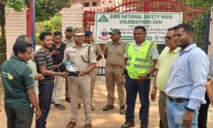 ଜାତୀୟ ସଡ଼କ ସୁରକ୍ଷା ସପ୍ତାହ ରେ ମୋଟରସାଇକେଲ ଚାଳକ ଙ୍କୁ ଶହେଟି ହେଲମେଟ ପ୍ରଦାନ।