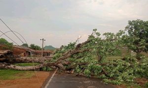 ଝଡ଼ ତୋଫାନରେ ଗଛ ପଡ଼ି ରାସ୍ତା ଅବରୋଧ; ବନ ବିଭାଗ ସହାୟତାରେ ହଟିଲା ଗଛ