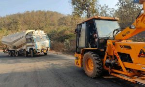 ରାସ୍ତା ମଝିରେ ଅଟକିଲା ସିମେଣ୍ଟ ବୋଝେଇ ବର୍କର,, ଚାରି ଘଣ୍ଟା ଜାତୀୟ ରାଜପଥ ୩୨୬ଅବରୋଧ….
