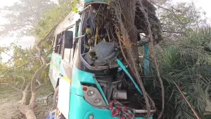 ଭାରସାମ୍ୟ ହରାଇ ରାସ୍ତାରୁ ତଳକୁ ଖସିଲା ଟୁରିଷ୍ଟ ବସ୍: ଦୁର୍ଘଟଣାରେ ୩ ଗୁରୁତର, ୧୫ ଆହତ
