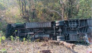 ନିୟନ୍ତ୍ରଣ ହରାଇ ଘାଟି ତଳକୁ ଖସିଲା ବସ୍! ୧୦ ଗୁରୁତର