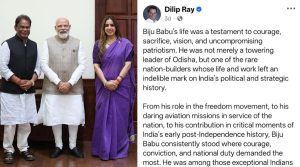 ସକାଳେ ମୋଦିଙ୍କ ଠାରୁ ଆଶୀର୍ବାଦ ନେଲେ ଦିଲୀପ ରାୟ, ସନ୍ଧ୍ୟାରେ ବିଜୁ ବାବୁଙ୍କୁ ନେଇ ବିଜେପି ନେତାଙ୍କ ବିବାଦୀୟ ମନ୍ତବ୍ୟକୁ ଦର୍ପଣ ଦେଖେଇଲେ
